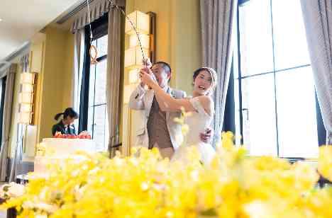 「美味しい料理とお酒を楽しんでもらいたい」と思い、力を入れました。 会場は私の好きな黄色の花をたっぷり取り入れ、明るい雰囲気にしました。 和装・洋装どちらも似合う披露宴会場は、衣装とマッチしてゲストから評判でした。