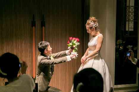 ゲストのみんなにも協力してもらい、大好きな新婦に改めてプロポーズをしました!!一本一本みんなから集めた12本のバラを新婦に渡すときは少し照れましたが、新婦はもちろんゲストのみんなも喜んでくれて、大満足です!!