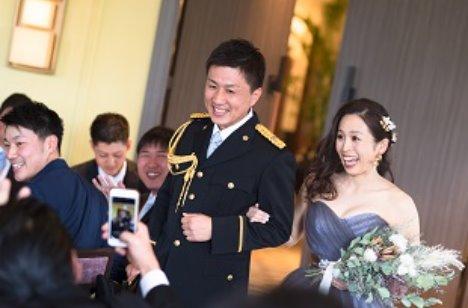 普段の仕事姿をぜひ両親やゲストのみんなにも見てもらいたかったので、お色直しでは警察官の新郎に礼服で登場してもらいました!!見慣れない姿なので、私自身も改めて惚れ直しちゃいました♪会場も大盛り上がりで大満足でした^^