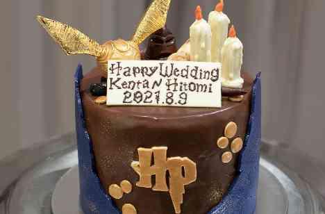 なによりもウエディングケーキをこだわりました!ふたりとも某魔法使いの映画が好きなのでスニッチと組分け帽子、ロウソクは絶対に飾りたいと思っていました。結婚式当日、実際に出来上がったものを見た時は再現度の高さに驚きました!打合せでも一番時間をかけていたので夢が叶いとっても嬉しかったです。ファーストバイトはスニッチの羽を両側からふたりでパクッと食べました。