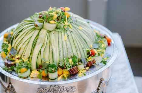 まずはサラダケーキ入刀で披露宴スタート!
