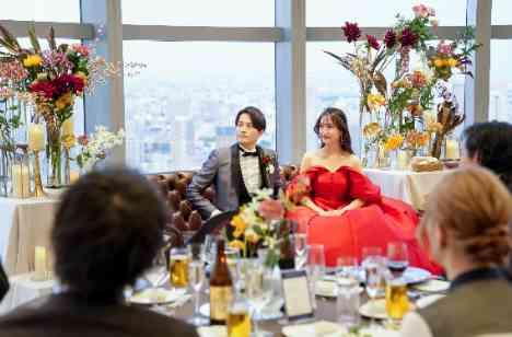 まず、ドレスは花嫁特権のパキッとカラーの赤にお色直し♪ それに合わせて装花の色味やソファーをセレクトして創り上げました。 とっても豪華な雰囲気になり大満足です^^ パーティ中には友人スピーチや定番のフォトラウンドを行い、たくさんの“おめでとう”や“幸せになってね”の祝福を受けることができ幸せでした。