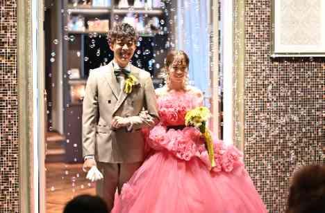 お色直し入場のときは可愛らしい雰囲気にしたい!と思いシャボン玉が降り注ぐ中、入場しました。 ピンクのカラードレスと相まって甘めなキュートな印象になったと思います♡ 再入場時では両親の結婚式のときと同じ曲をサプライズで使い、泣いて喜んでもらえました。 お写真映えバッチリの素敵なシーンになったと思います!