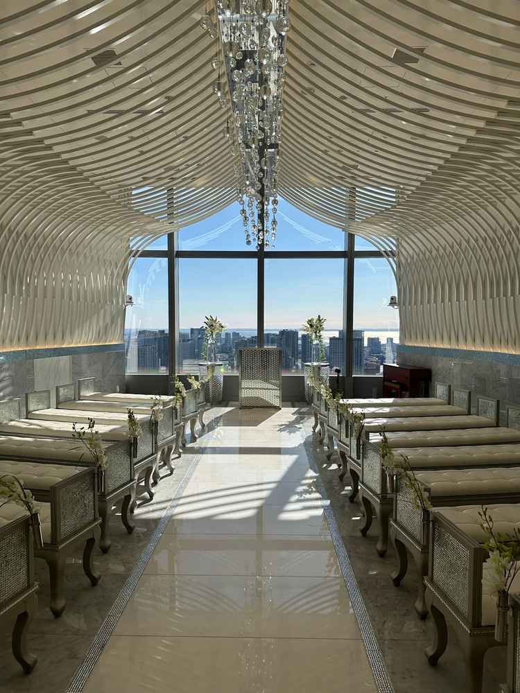 ワンフロア貸切のため、他の披露宴も入らず設備や環境ら充実していると思います。エレベーターも高層階に直通のものが2台あり、混雑も回避できそうでした。