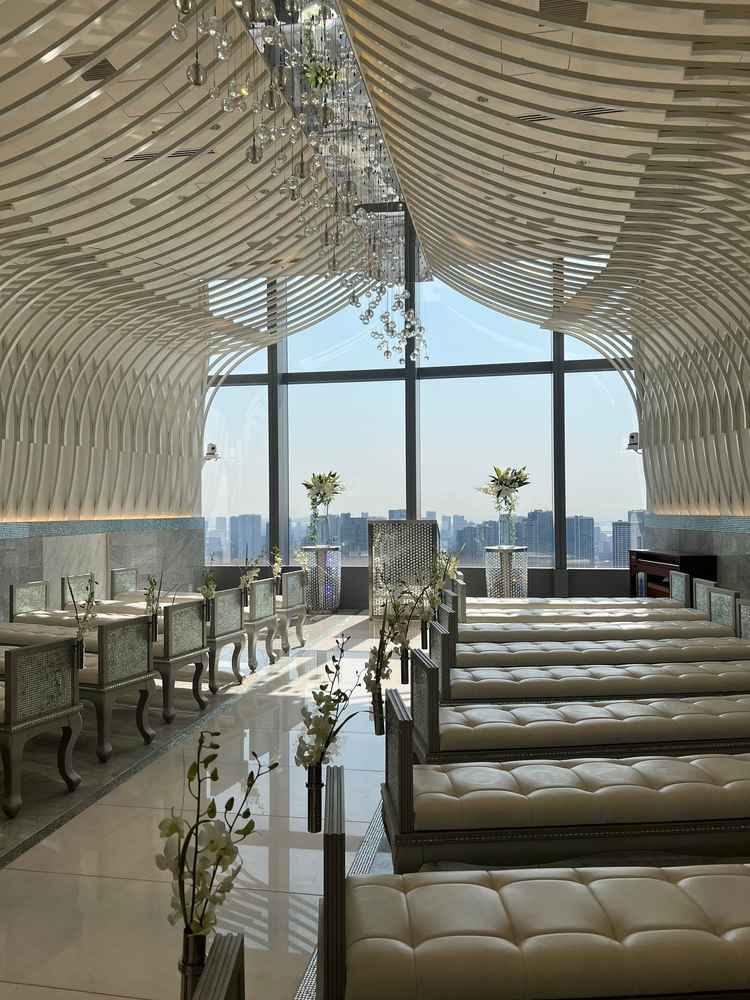 白基調のチャペルと広がる景色は絶景だった。プランナーさん達もとても丁寧な対応でわくわくする雰囲気があった