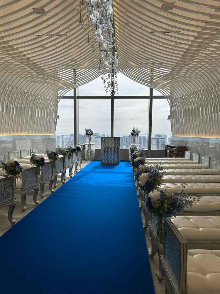 高層階の大パノラマが非常に素晴らしい光景で圧巻だった。披露宴会場のカーテン演出が印象的だった。披露宴会場の形が丸く、ゲスト全員が特等席として過ごしやすい造りだった。