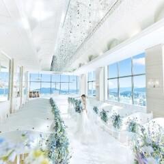 【チャペル入場体験】~降りそそぐあたたかな光と青空に誓いを~自然光とゲストの祝福に包まれる幸せな時間。ホテル最上階で姫路城を望むロケーションが魅力の絶景スカイチャペル。(最大100名収容)おふたりの名前と挙式が刻ま