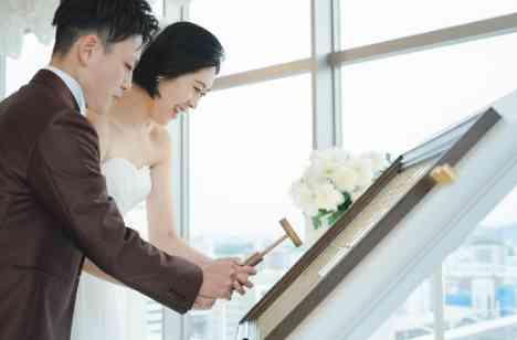 白基調のチャペルにチャペルのお花はグリーンテイストで堅苦しい感じがないナチュラルな雰囲気を演出。 人前式では立会人のご署名をご兄弟へお願いされ、素敵なサプライズとなりました。 おふたり様のお名前と挙式日が刻まれたプレートを額に打ち込んでいただくホテルモントレオリジナルのセレモニー演出は今後もおふたり様の思い出の場所として記念として館内に飾らせていただきます。