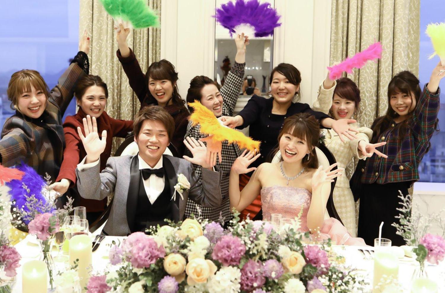 ご余興では、ご友人の方がバブリーダンスを披露してくださいました。ご結婚式までにたくさん練習をしてくださり、本番大成功!!新郎新婦様のたくさんの笑顔も溢れ最後は記念写真!皆様とのお時間を大切にされたアットホームなご披露宴でした♪