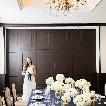 長いテーブルを囲んで座っていただくので、ゲストとおふたりとの距離はとても近い造りです。華やかで明るい会場とシックで落ち着きのある会場の2タイプございますので、おふたりの好みでお選びいただく事が可能です。
