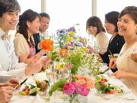 貸切の個室なので、まるでおふたりのお家にゲストをご招待するような感覚でアットホームなパーティーが叶います。 向かい合わせのお食事スタイルは会話も弾みゲストの方皆様が楽しんでいただけます。