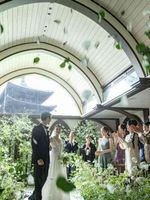 写真映えする演出でもある「フラワーシャワー」で大切な親族や友人に囲まれて楽しいひと時を感じられます。季節ごとに違った色や雰囲気を味わうことができるチャペルは、『京都らしさ』もまた感じられます。聖歌隊の生演奏がシーンに合わせて感動を高めてくれます。