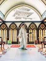 和装でも衣裳が映えるチャペル。カジュアルから上質な挙式などお二人にあった雰囲気で挙式が叶います。和装での演出で人気の「折り鶴シャワー」友人に囲まれて楽しいひと時を。京都祝言だからこそ叶う、歴史を超えた建築を感じながらのおもてなし。