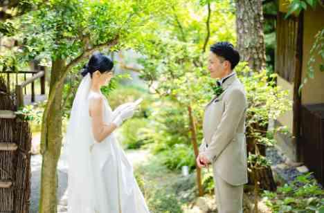 チャペルだと少し堅くなってしまうとの想いから 最初のファーストミートは中庭で行われました 一日の始まりに新婦様からのサプライズのお手紙で 新郎様も涙される素敵なシーンとなりました。 実は新郎様からもご披露宴の結びに 新婦様へのサプライズをご用意されており お互いへの想いがとても伝わる一日となりました