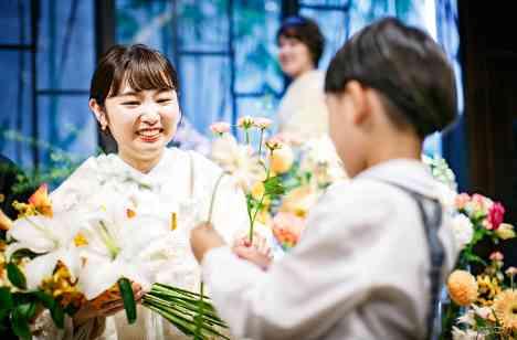 祝言式ではご親族の皆様とのお時間を大切にしているため挙式の中では親御様、ご兄弟様にお手伝いいただくシーンが多くありました。感謝を届けられる一日をテーマとし、まずはご親族の皆様に感謝を届けていただきました。おふたりが指に結んでいる赤い紐は祝言式で行われる「結い紐の儀」を行い永遠に結ばれたことを意味する日本的な儀式です。