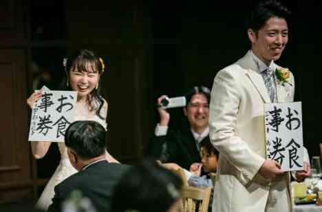 おふたりと打合せをスタートさせていただいた時 一番感謝を伝えたいのは親御様へと仰っていただきました。これまでのおふたりをたくさん側で支えてくださった親御様への記念品はおふたり手作りの今度一緒にいこうねという想いが込められたお食事券。 ゲストの皆様にも見守られながら親御様にお渡しすることができました。