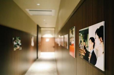 挙式会場や披露宴会場に向かうまでの何気ない廊下や階段の鏡を使用し、 お二人がご用意した前撮りで撮影したお写真の写真ボードやシールを使って装飾。 披露宴以外のところでも来てくれた方々を楽しませるお二人のこだわりが満載です!!