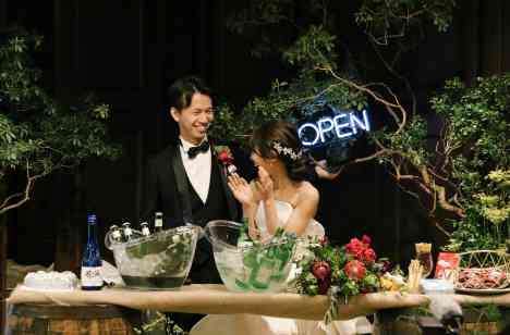 お二人の思い出でもある韓国をテーマにチャミスルが飲めるチャミスルバー パーティの後半ではご新婦様のお仕事にちなんだお菓子屋さんがオープン。もちろんその場にたってゲスト様におもてなしをするのはオーナーである新郎新婦様。 あくまで歓談のお時間をベースに組み込んだので、メインであるお食事も楽しめてバーカウンターやお菓子屋さんに行くとお二人とお話も出来る沢山のおもてなしが詰め込まれた時間となりました。