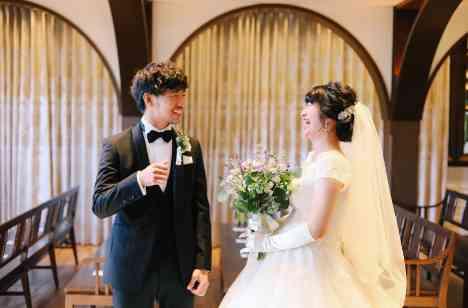 お二人が別のお部屋でお仕度をし挙式の前のほんの少しの時間で行う”ファーストミート”。 演出は特に派手にしなくていいというお二人のご希望があったもののやはりお二人のスタートの一日に何か思い出に残るものがあれば。。と思いファーストミートをご提案しました。 とても幸せそうなお二人の笑顔が印象的です。