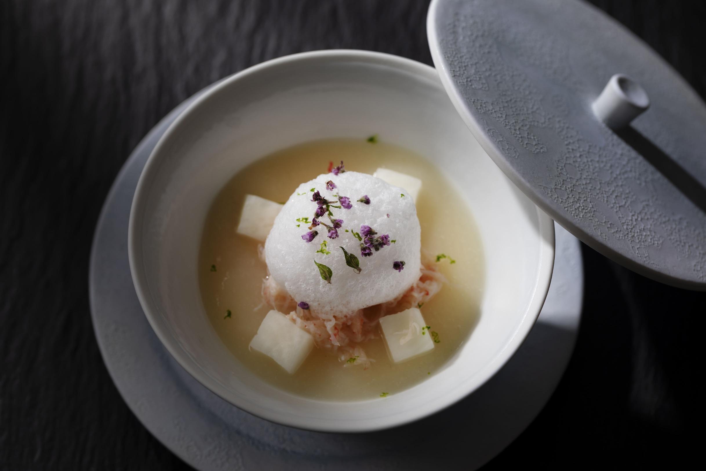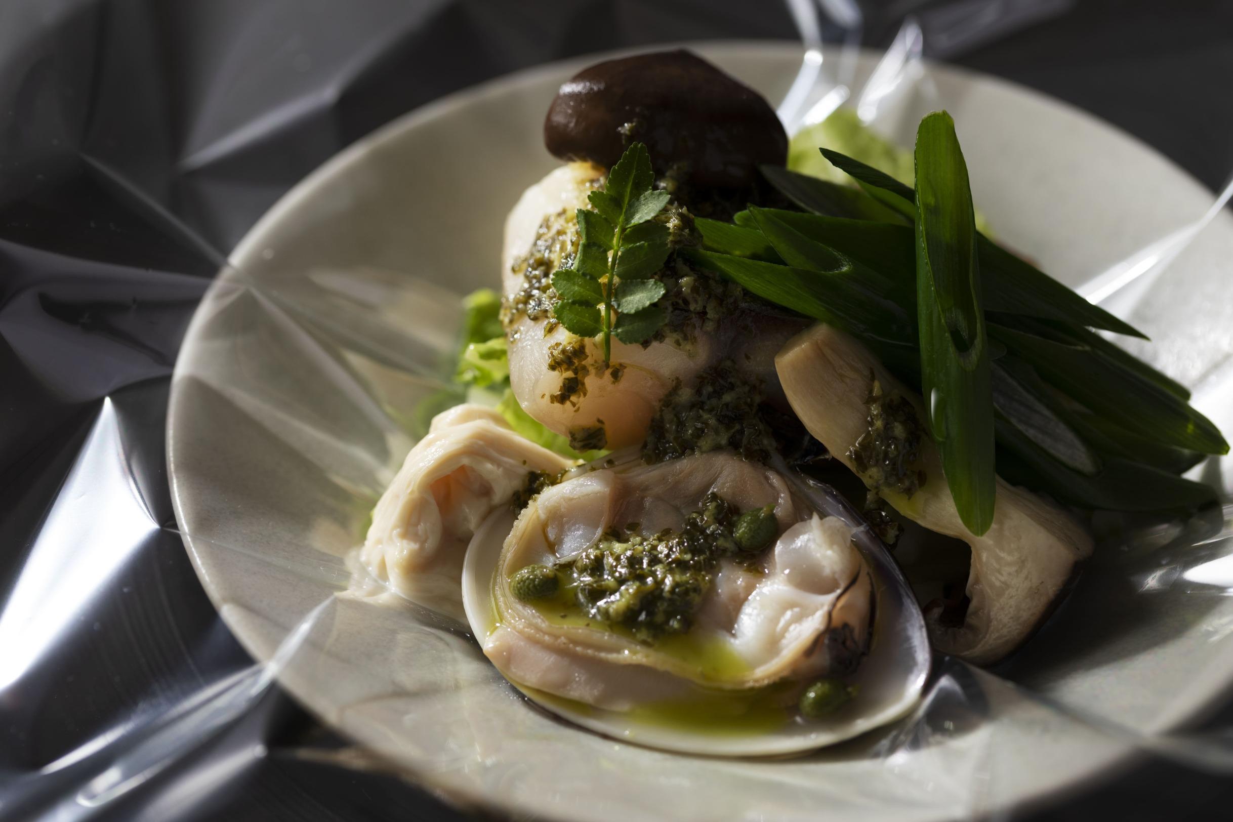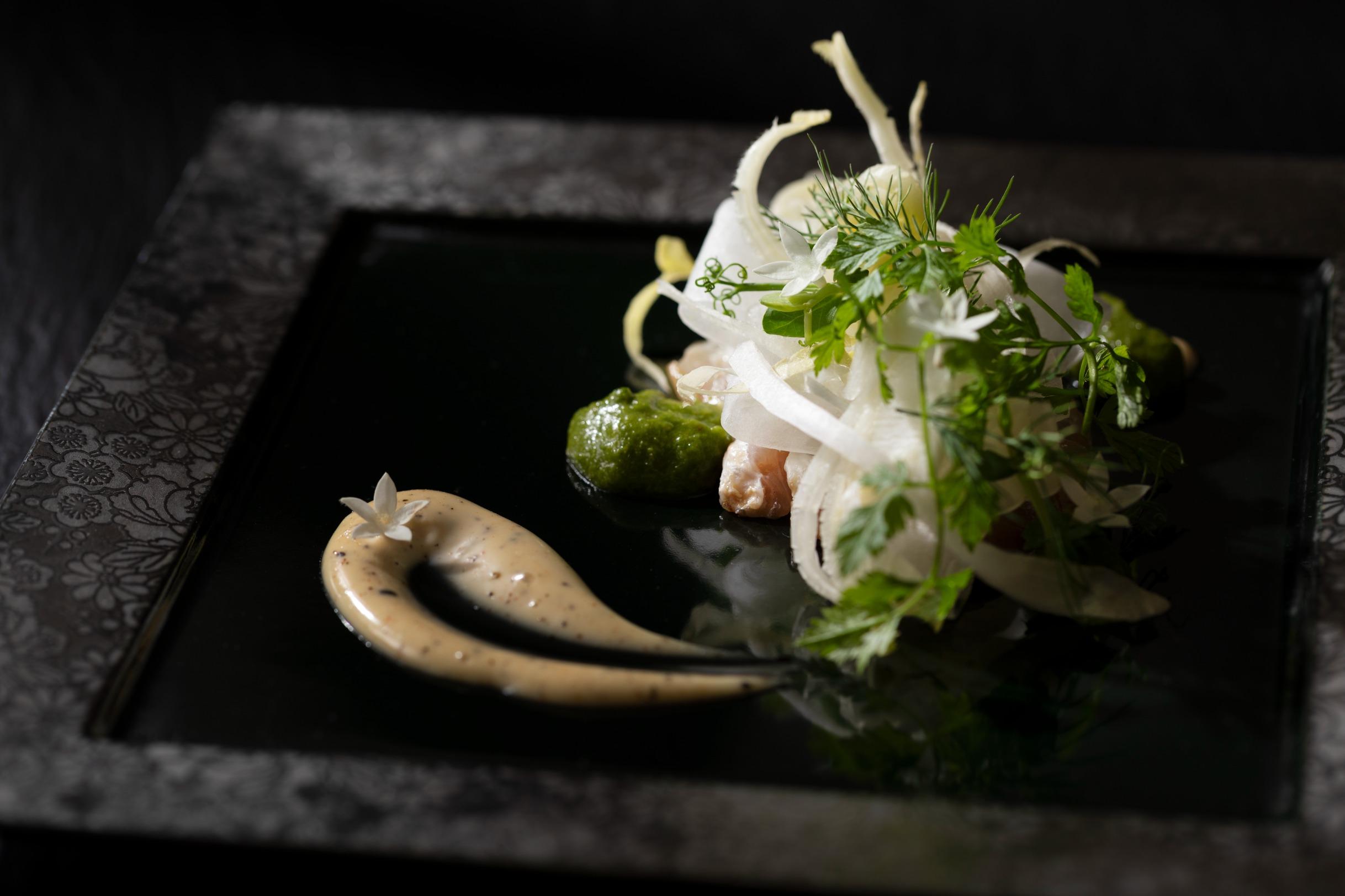 京都の四季を映す旬の食材を用い、懐石やおばんざいの伝統に日本の美意識を重ねた料理。盛り付けには町家や庭園に見られる「間」や「陰影」の感覚を取り入れ、味覚だけでなく景色や余白までもを表現している