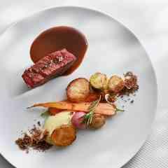 おもてなしの最大ポイント、料理。「飛騨牛フィレ肉のロティと契約農家から届いた季節の野菜 ソースヴァンルージュ トリュフを散りばめて」など北海道×岐阜の美味を堪能できる。