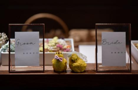 ひよこが大好きでいつも日常の中にいるとお話しされるおふたり。 それなら!と結婚式にもひよこを呼びました。愛くるしい姿でゲストのハートをつかみます。 おふたりの手作りウェルカムひよこがゲストをお出迎え。 さらには、新郎の祖父母がされていたという商店が1日復活したコーナーも。 街の人たちが気軽に立ち寄る万代屋さんだった当時を思い出したご親族が喜ばれていました。