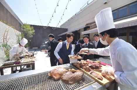 そして青空が心地よいガーデンに出て、お待ちかねのBBQタイム! 立派なお肉や帆立など海の幸も豪快に焼き上げられ、ゲストと一緒に楽しみます。 最初は「BBQができる」ことでセンティールに惹かれたというおふたり。 話をしていくうちにちょっとした会話がカタチになり「とにかく私たちの要望を叶えてくれた」「動物も呼べる」とお喜びに。「楽しい結婚式をしたい人にお勧め」とお声をいただきました。