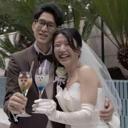 ハグが日課ということもあり、お二人から結婚式にも取り入れたいとご希望いただきました。 入場前はとても緊張されていたのですが、その緊張が噓のように良い表情でクロージングハグを行うことができました。 挙式の後のフラワーシャワーでは、お姫様抱っこで登場、ゲストの反応も良くとっても盛り上がる演出となりました。