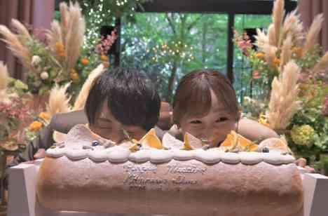 披露宴ではゲストに楽しんでいただくためのアイディアでいっぱいでした。 乾杯は小さなお子様たちが、大人顔負けの挨拶で乾杯~! ご両家の祖父は、自分たちのウエディングケーキのプレゼンター役に抜擢しました。 運ばれたバームクーヘンにお二人ががぶり! 披露宴中に、地元の地酒飲み比べコーナーの横で、 ご新郎様自らがオリジナルカクテルを皆様へ振舞いながらの談笑を楽しんでおりました。