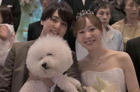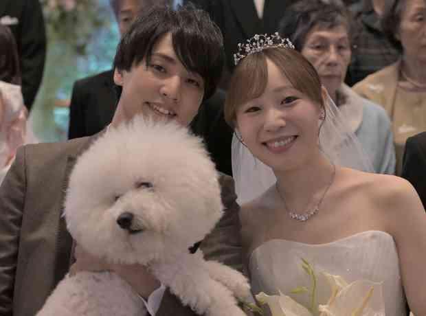 お式はご家族様とお越しいただいたゲストの皆様との大切な時間。ご新婦様は、育ててくださったご両親と共にバージロードを歩きたいと3人でご新郎様の元へと進みました。 大切な指輪は愛犬のタタ君と甥っ子様に運んでもらいます。 ウエルカムパーティーは空へと飛び立つバルーンリリースと共にスタートしました! エスコートカードはうれしいプチギフトと共に、ご自身でお名前を探しをしていただきます。