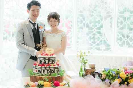 お式のあとは!!広いお庭でウエルカムパーティー! ここでは、お二人のテーマである「BBQ」が存分に溢れたとっても楽しい時間となりました。 そして、披露宴で新婦様デザインケーキの登場時は「可愛い~♡」と会場中至るところでお声が聞こえました! ウェディングケーキを乗せているものは、なんと!きり株なのです♪ とてもハイセンスなウェディングケーキで周りにはたくさんのゲストがお集りいただきました!