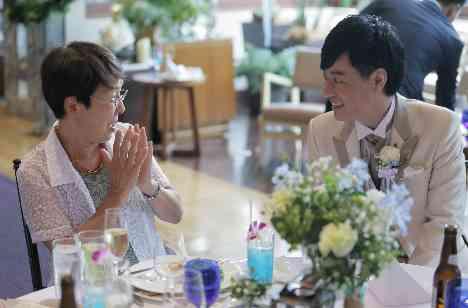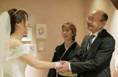 お仕度が整いましたら、いよいよ親御様とのご対面シーン。 目に涙を浮かべながら「おめでとう」と伝えるお父様は非常に素敵でした。 ご家族写真。親御様がとても嬉しそうです。 挙式が始まり、笑顔が増えてきたご新婦様。 大好きな方々に囲まれ、会場は祝福の拍手に包まれました。 フラワーシャワーでは手を繋いでご登場!お天気にも恵まれ、皆さんにお声をかけて頂きながら温かい雰囲気で過ごされました。