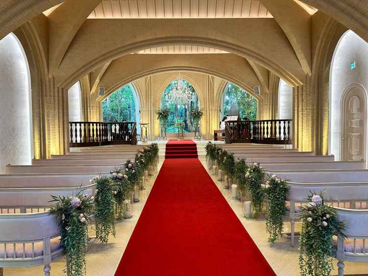 雰囲気はSNSなどでもみていて私の好みでしたが実際みるとより気に入りました。チャペルの赤いバージンロードもドレスが映えて綺麗だと思いました。