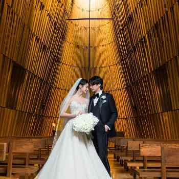 著名な空間デザイナーによる、木の温もりと薫りに包まれた「グランドチャペル」。高さ16mの天窓から自然光が降り注ぎ、長さ17mもある大理石のバージンロードは花嫁を美しく演出してくれる特別なステージ。