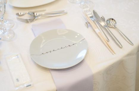 “引出物は新郎新婦からのプレゼント” 気持ちを込めて選ばれた商品は、ひとりひとりのお名前が入ったプレートです。 中身を出して、見えるように置いてテーブルコーディネートの一部にしました♪ 席に座ったゲストは自分の名前を見つけてびっくり! ご友人同士で見せ合ったり、一緒にお写真を撮りながら新郎新婦の入場を待ちました♡
