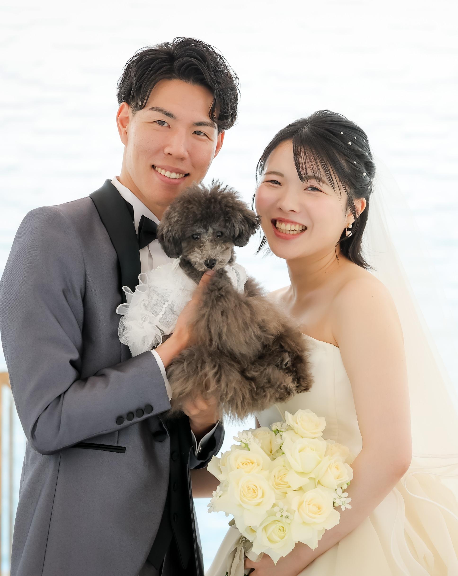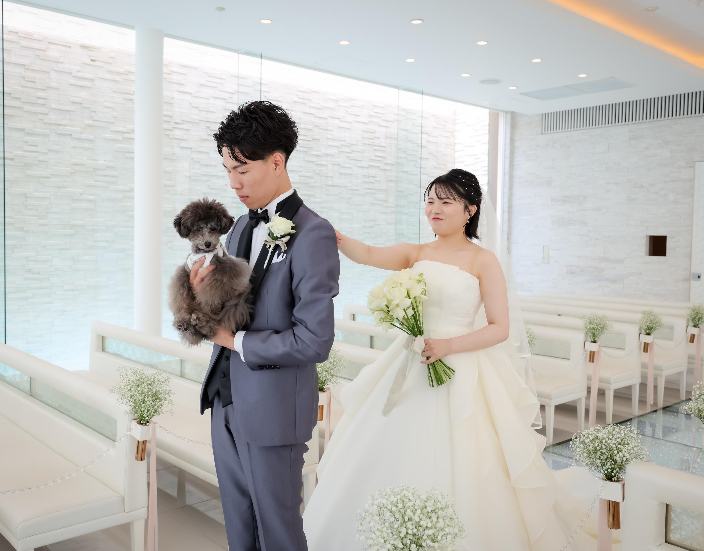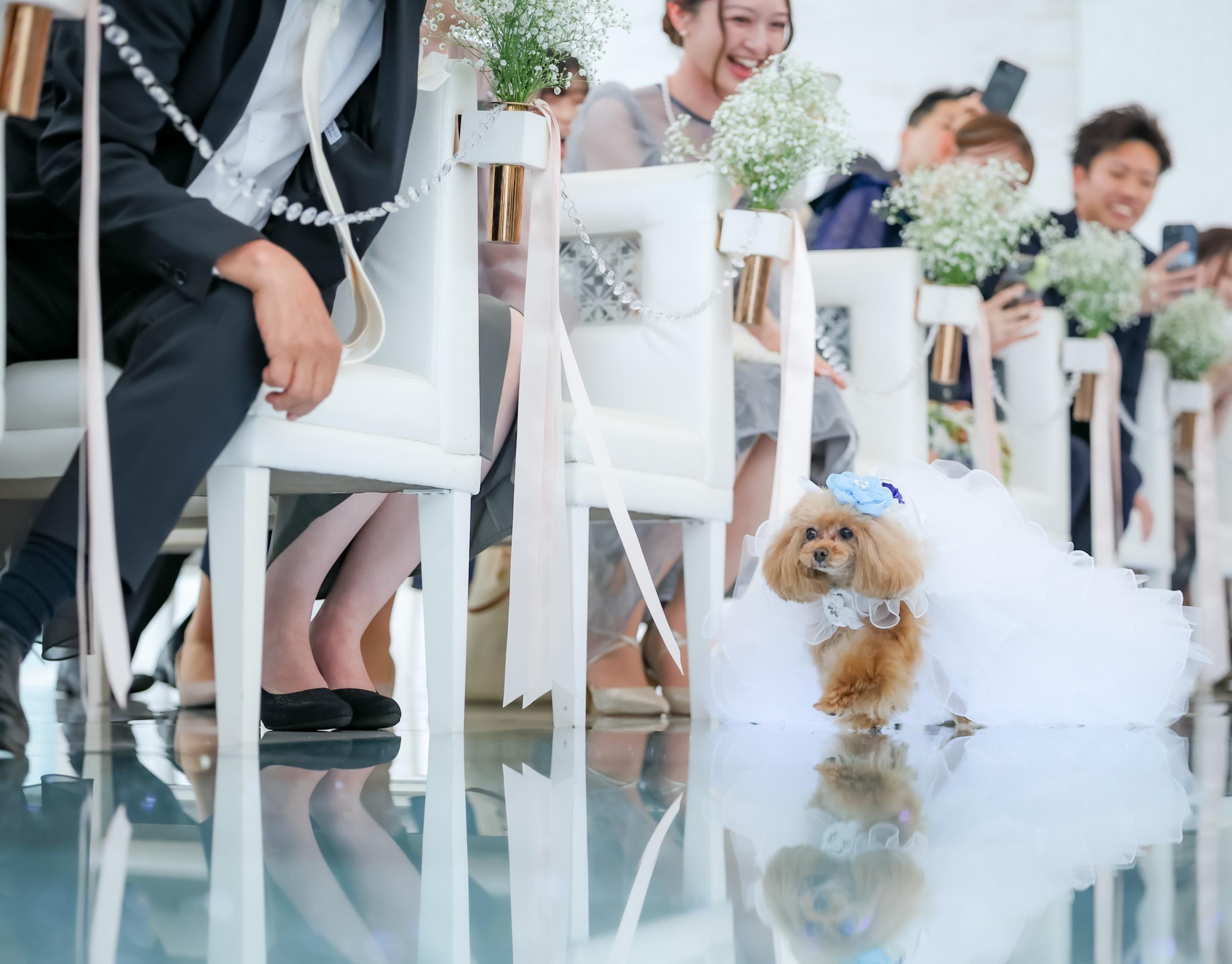 ペットも大切な家族の一員。前撮りやリングドッグの演出などペットも結婚式に参加!ペットシッターの紹介も可能です。(飲食のない場所に限り参加可能)