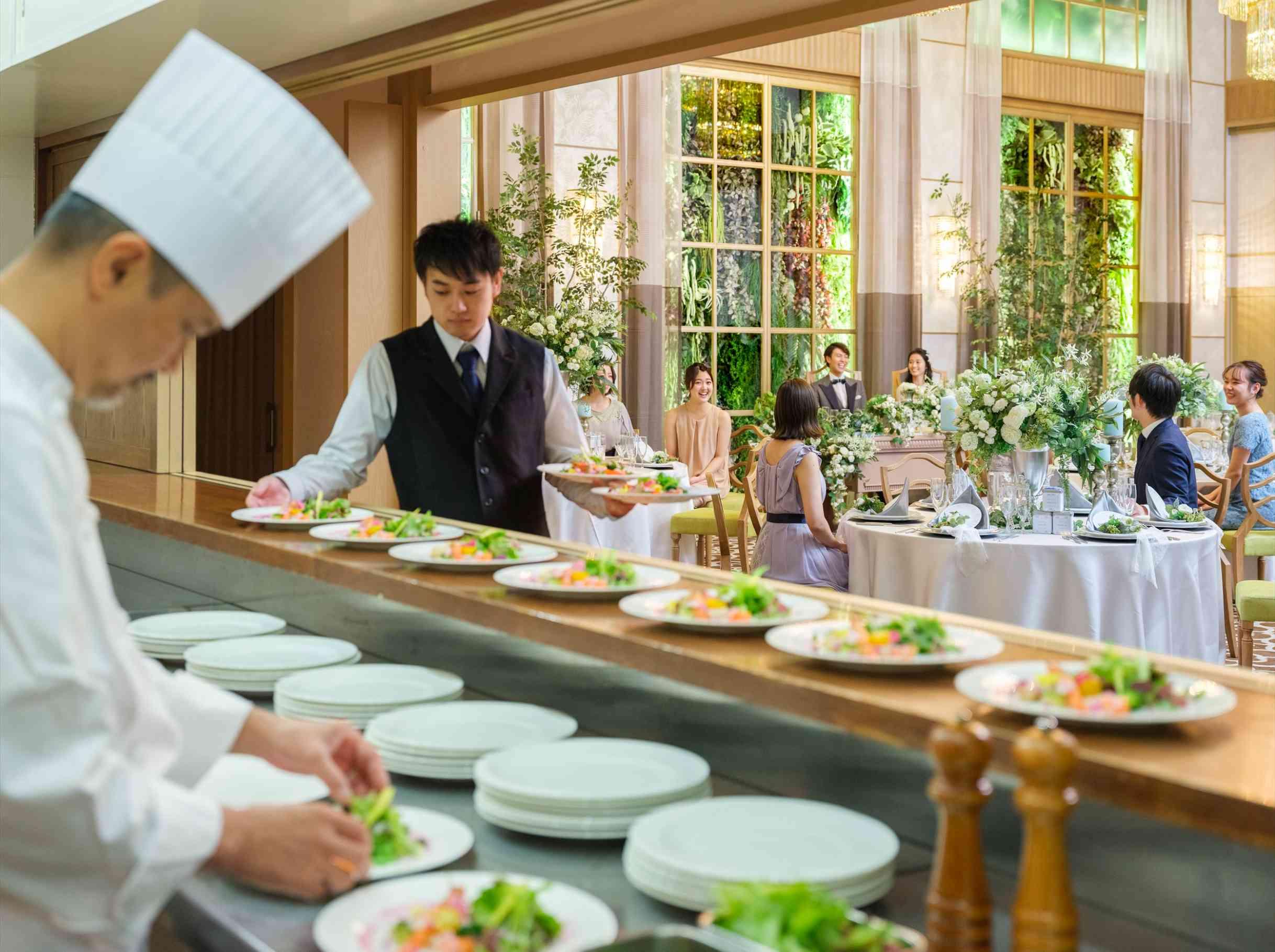ゲストの苦手な食材やアレルギー対応はもちろん、シェフが打ち合わせに同席し、出身地の食材を使用したり思い出のメニューの再現するなど、おふたりオリジナルのメニューを提案します。