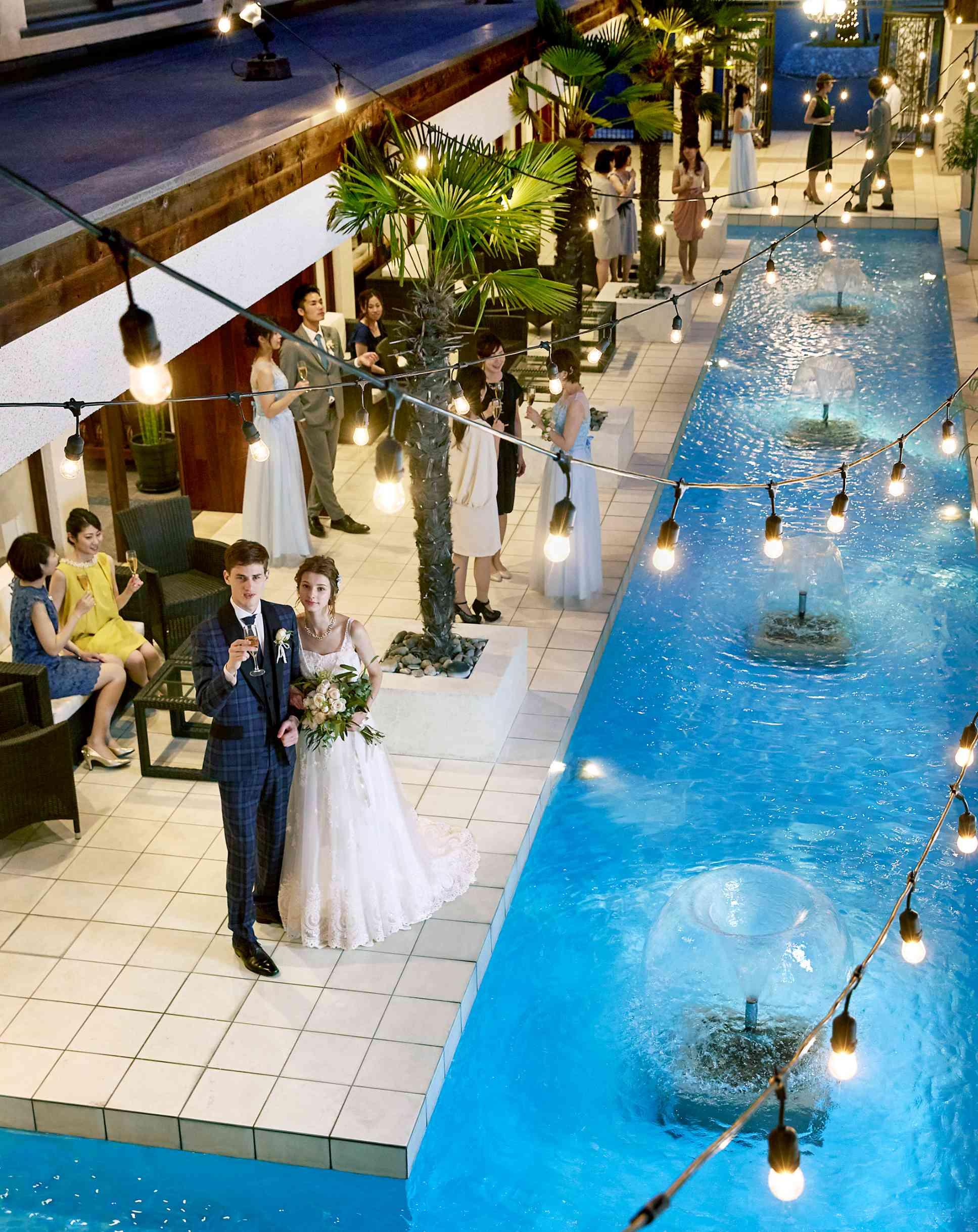 会場とプール付きガーデンはひと続き!