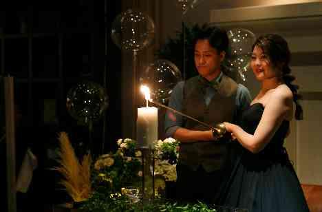 お色直し後にタイムカプセルキャンドルのメッセージを受け取りながらゲストテーブルを回り、メイン席にて記念撮影。皆様の思い出に残る演出でした。 また、新婦様ご友人の余興のお祝いムービーが上映され、その映像の流れから新郎様から新婦様へサプライズでプロポーズ。新婦様はとても感動されており、ゲスト様の温かい拍手に包まれた時間でした。