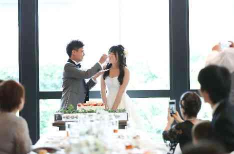 ご親族様と過ごす時間、会話を大切にされたいおふたり。 ゲスト皆様の顔が見えひとり一人に感謝の気持ちを伝えることが出来るテーブルセッティングで皆様を迎えることに。 ゲスト皆様が笑顔で見守る中、盛り上がりの一つであるファーストバイトの演出。ファーストバイトには【一生食べるものに困らせない】【一生おいしい料理を作るね】という意味があり、大きなスプーンを使っての一口にゲストの皆様も笑顔に。