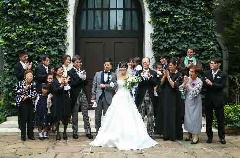 挙式後のシーンでは温かな拍手で迎えられ、ガーデンで大切なゲストの皆様とゆったりお写真撮影。 貸切の会場だからこそ独立教会の前でゲストの皆様と思い出に残る一枚を。 挙式の感動を胸に大切なご家族様と会話を楽しんでいただく事ができるのはサンタキアラ教会ならでは。 厳かな挙式の後は笑顔があふれ、穏やかなお時間をお過ごしいただけました。