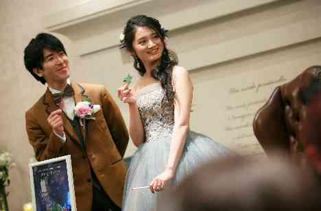 お色直し後のメインイベントはゲストの皆様が参加できる「スタードロップス」という演出。 受付で星形チップひとりひとり選んでいただき、名前やメッセージを書いて大きな額にゲストの皆様の想いを込めてセット。最後におふたりの分を追加して、その日集まった全員で造り上げた一つの思い出の品に。 完成を見届けたゲストの皆様からの拍手で会場が包まれました。