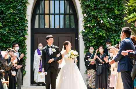 お天気にも恵まれ、緑溢れるガーデンでのアフターパーティーでの演出が盛りだくさんに。 まずは皆様から祝福のフラワーシャワーで迎えられてご退場されました♡ 続いてブーケトスではゲストの皆様に笑顔が咲き、そんな素敵な表情を青空のもとで集合写真に収めました。 新緑の美しいガーデンにてアットホームなお時間を満喫されました。
