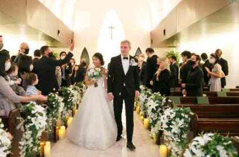 海外にお住まいの御両家ご家族様にはライブ配信システムを使って挙式を楽しんでもらいました。嬉しそうに見守る親御様の表情を画面越しに見ることができ、お二人も喜んでいらしゃいました。 挙式の指輪交換シーンではお子様キャストに協力してもらいリングベアラーちゃんが登場!にほっこりとした空気に包まれました。退場シーンではゲストの皆様からの盛大な拍手とフラワーシャワーの祝福に緊張が取れ笑顔でご退場されました♪