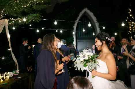 こだわり詰まったガーデンパーティ。お写真を撮ったり、お酒を飲んだりお話をしたり・・・。キラキラと輝く装飾でまるでイルミネーションの中にいるような、幻想的な雰囲気に!お二人にしか作り上げることができない空間でした♪ 世界に1つだけの笑顔溢れるパーティ。結んだ後もお二人とゲスト様とでお話は絶えず、会場は幸せの余韻に包まれておりました・・・♪♪