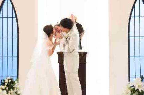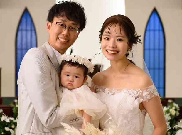 挙式でのウェディングキスはお二人で行われたのち、お子様のほっぺたにもされました♡ 3人で一緒に永遠の誓いを立てる、これからの温かな家庭を、幸せな未来を誰もが思い描ける、 そんな心温まる素敵なワンシーンとなりました。 お子様は、祭壇に登場したり、お母様と一緒にお席からお二人を見守られたりと、親御様にもご協力いただきながら3人での挙式を叶えられました。
