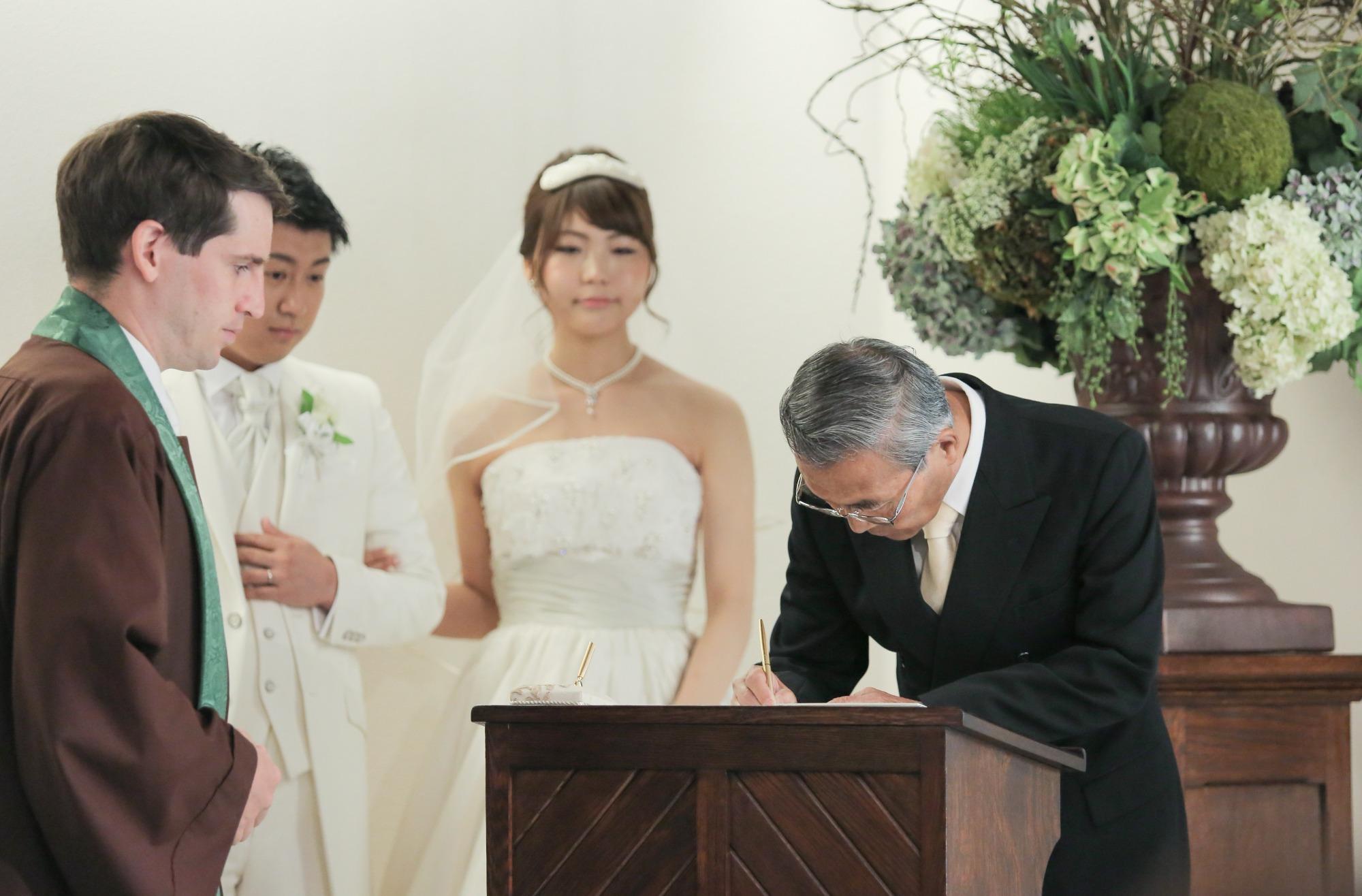 親御様からの立会人署名を頂きます。 そして、普段はなかなか伝える機会のない家族のメッセージを伝えて頂くことで、ゲストも絆を感じて頂ける挙式になります。