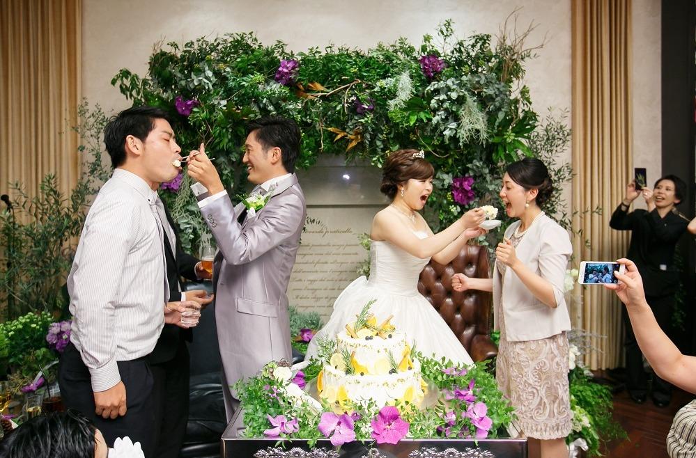 『サンクスバイト』とは、今まで一番お世話になった両親に、感謝の気持ちを込めて子供である新郎新婦がケーキを食べさせてあげる演出のこと!でも実は、サンクスバイトは誰を指名しても良いんです◎! TakanoriさんとAyanaさんの場合は、お世話になったゲスト様へのサプライズです*