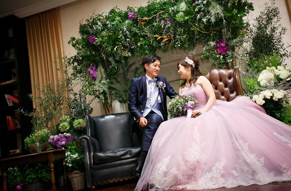 TakanoriさんとAyanaさんのご希望は「ゲストと一緒に楽しむ結婚式」 それを実現するために、おふたりとゲスト様との距離感を近くするメインソファの登場です! まるでジャングルのようなコーディネートで、会場内が緑と愛で溢れていました* 自然の中にいるかのような、ゆったりとした時間と和やかな空間の中での結婚式は、まさに居心地の良い空間として皆さまに楽しんでいただきました!