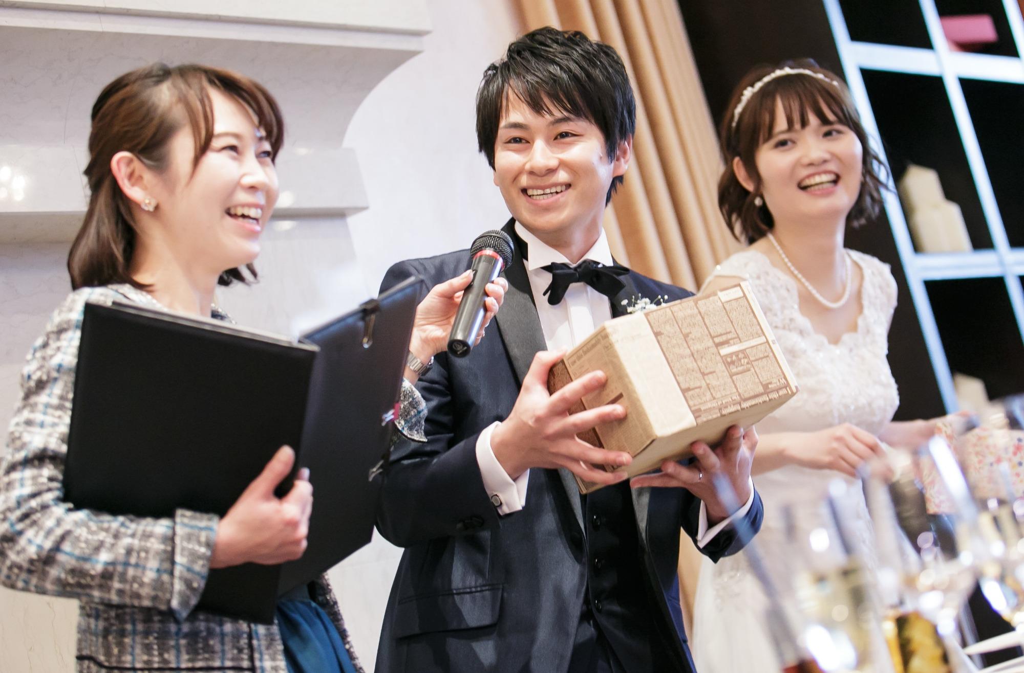 ゲストの皆様と一緒に楽しめるよう くじ引きでサプライズバイトを行いました 誰に当たるのか 会場は大盛り上がり♪ 皆様とお写真を撮影したのちに デザートブッフェでお楽しみいただきました 新郎新婦様もゲスト様と同じ目線で楽しんでいただきました♪